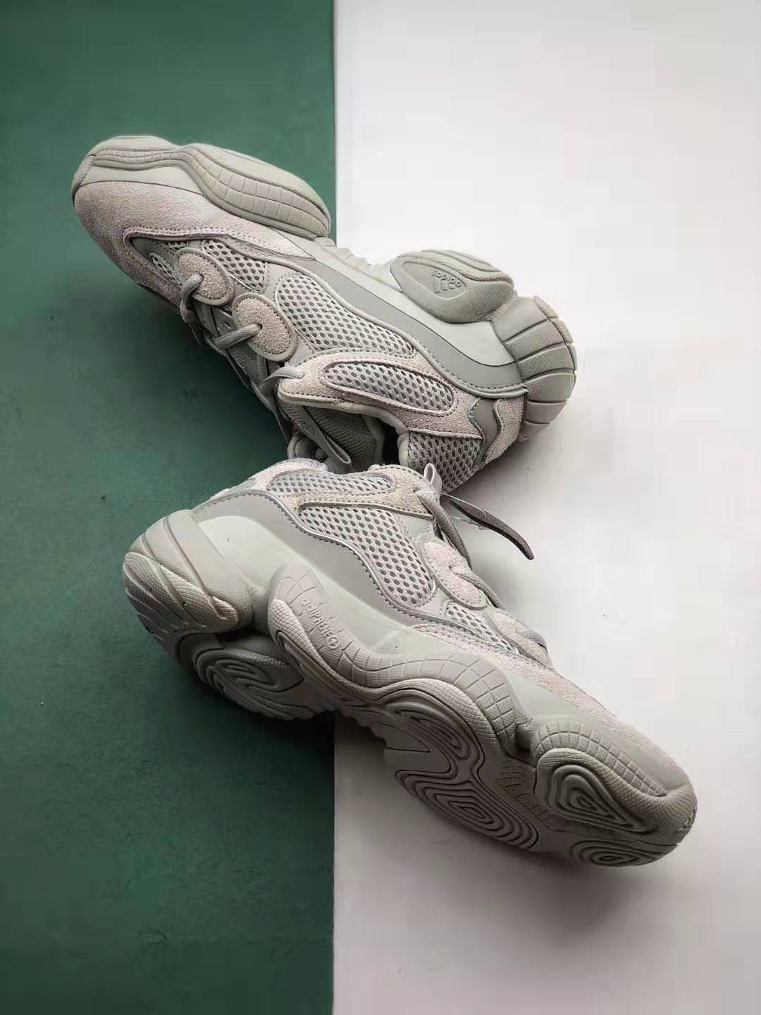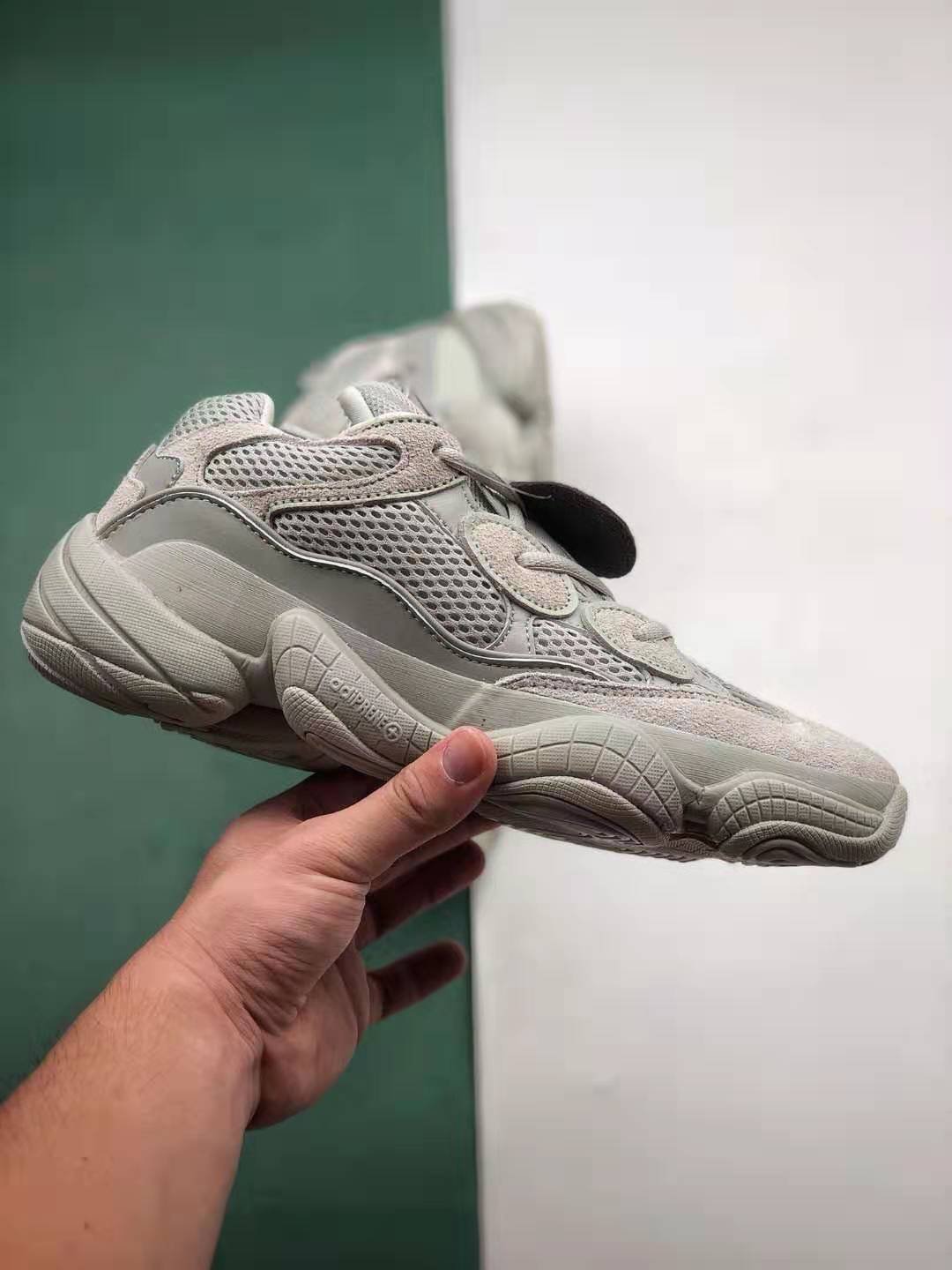 One of the key features of the Adidas Yeezy 500 Salt is its sleek and contemporary silhouette. The shoe is crafted with a high-quality combination of premium suede, mesh, and leather materials, ensuring both durability and breathability. The monochromatic salt grey color scheme is versatile, making it suitable for various outfits and occasions.